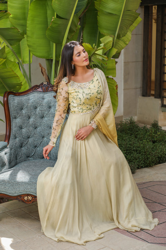 Floral Yoke With Circular Anarkali Gown With Dupatta
