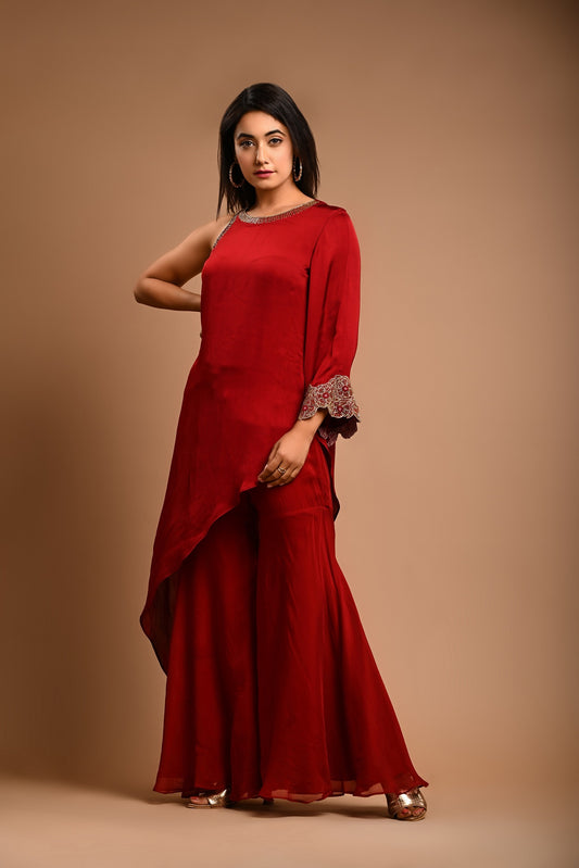 ASSYMETRICAL MIDI DRESS WITH A TIEUP BELT